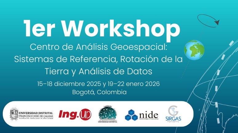 La Facultad de Ingeniería, el Grupo de Investigación NIDE (Núcleo de Investigación en Datos Espaciales) y el Semillero de Investigación en Astroingeniería de la Universidad Distrital Francisco José de Caldas presentan el 1er Workshop del Centro de Análisis Geoespacial, un espacio especializado orientado al estudio y aplicación de los fundamentos que permiten medir, representar y analizar la Tierra y su dinámica con estándares científicos globales.